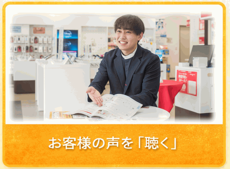 「話するのが好き」「聞き上手だねと言われたことがある」「お客様と直接かかわる仕事に興味がある」「チームワークの良い職場で働きたい」「コミュ力爆上げしたい」「地域に密着してお客様に喜ばれる仕事がしたい」「どうせやるなら仕事もプライベートも充実させたい」