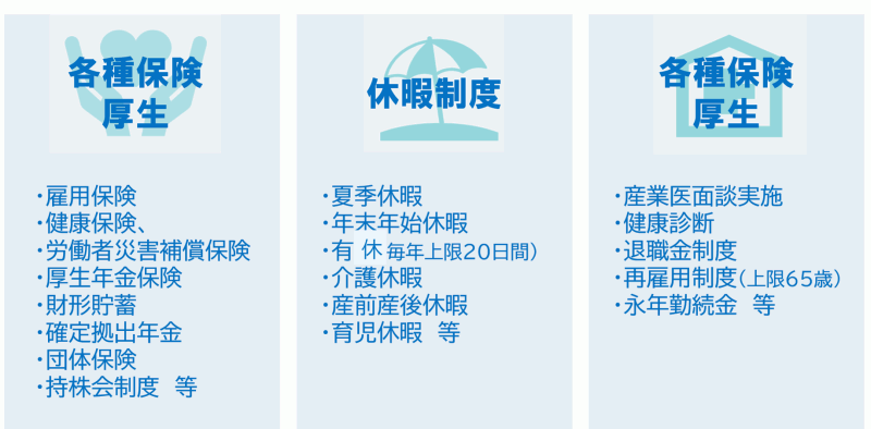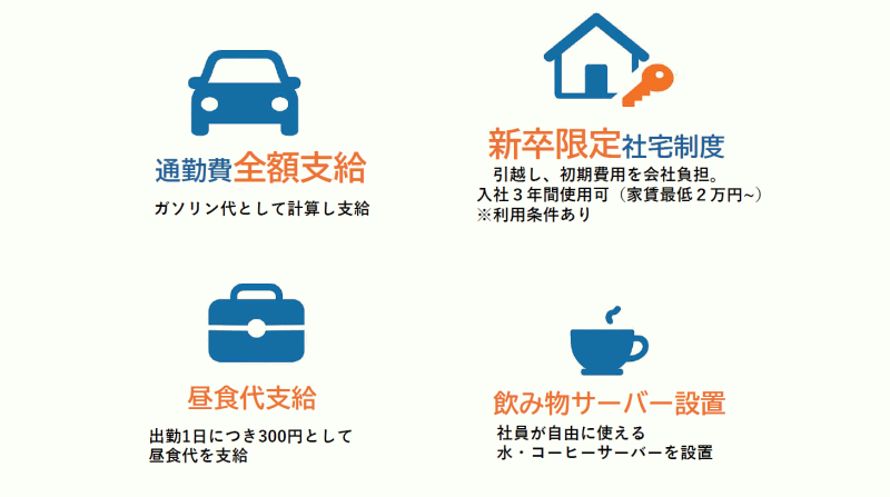 通勤費・家賃・会社での昼食代など、日常生活で欠かせない費用を会社がサポート!