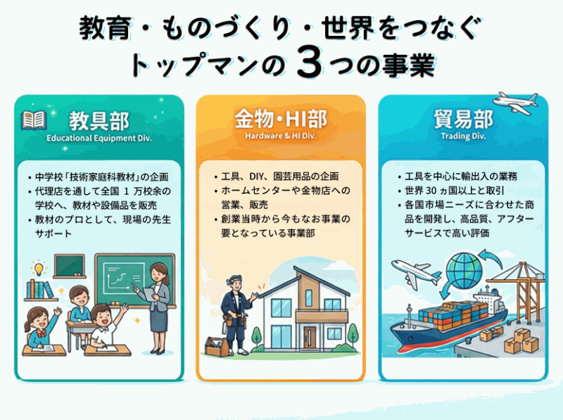教具部は、学校や教育現場で使われる教材・教具を扱い、子どもたちの「学び」を支える仕事です。