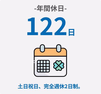 年間休日122日の完全週休2日制で、土日祝がお休みです。