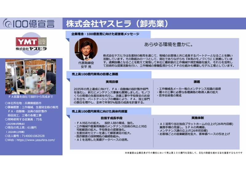 🚀 ヤスヒラは“成長宣言企業”として、国が応援する100億企業プロジェクトに参加中!