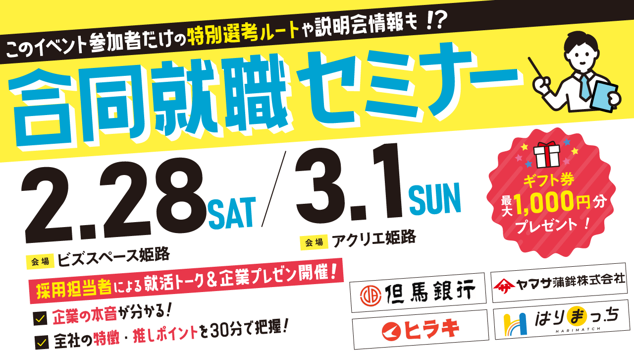 【2/28@ビススペース姫路】ここでしか得られない兵庫県企業の採用情報満載! 合同就職セミナー