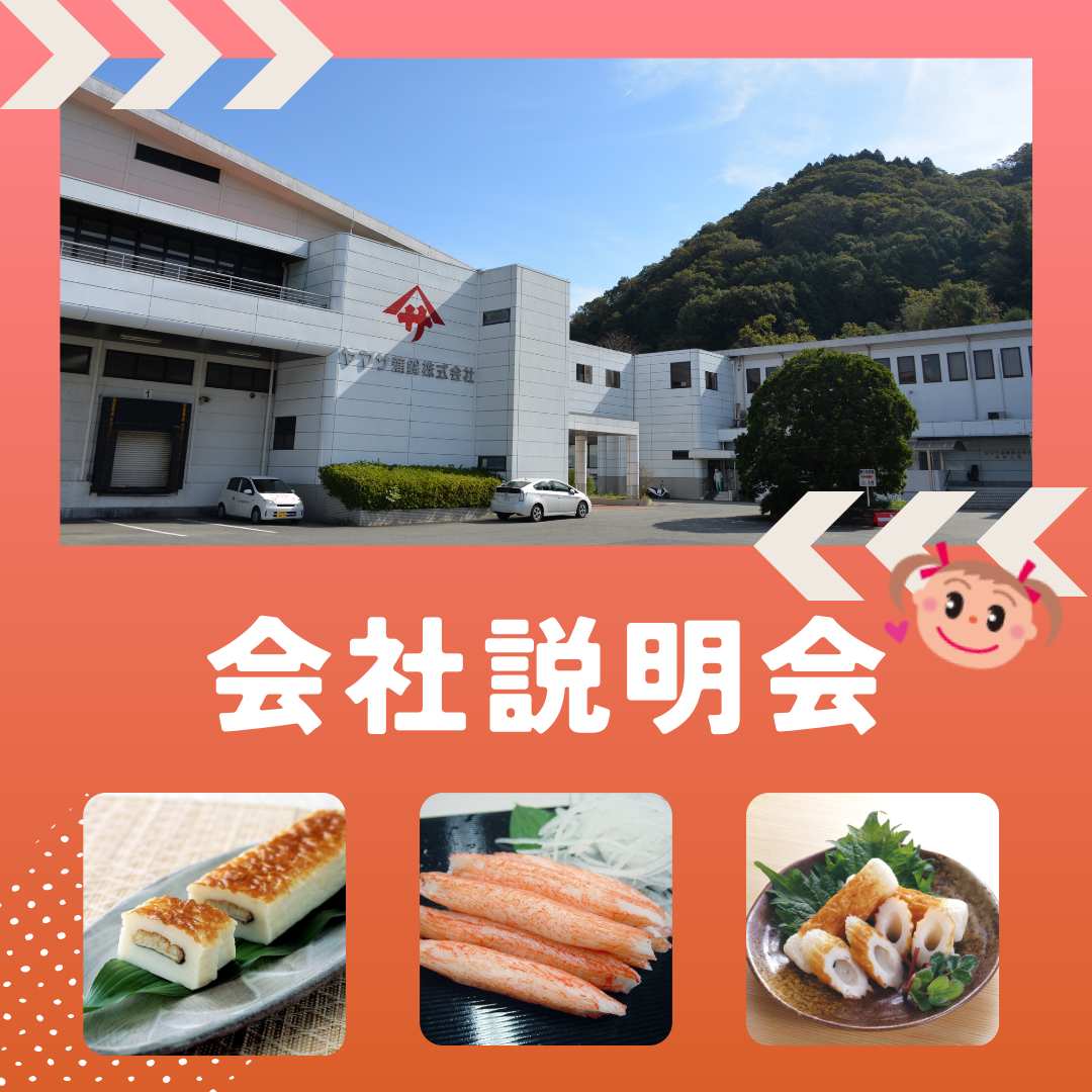 ヤマサ蒲鉾の会社説明会では、会社の魅力や働く環境、求める人材像などを、現在就職活動中の方やこれから就職活動を控える大学3年生の皆様に伝えます。また、実際の工場を見学していただくことでヤマサ蒲鉾につ…